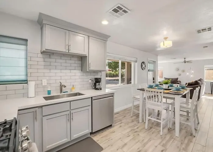 Het vakantiehuis is op 4 km van het Arizona State Capitol gelegen, terwijl gasten ook een bezoek kunnen brengen aan het Wetenschapscentrum van Arizona, dat 2 km verderop ligt. Deze villa in de Encanto wijk bevindt zich binnen een 10-minuten rijafstand van natuurlijke bezienswaardigheden zoals het Encanto Park. Phoenix Retreat Main House And Casita Sleeps 8 villa is gelegen op 2,1 km van de Basiliek van Sint-Maria en binnen 3 km afstand van uitgaansgelegenheden zoals het Orpheum Theater.